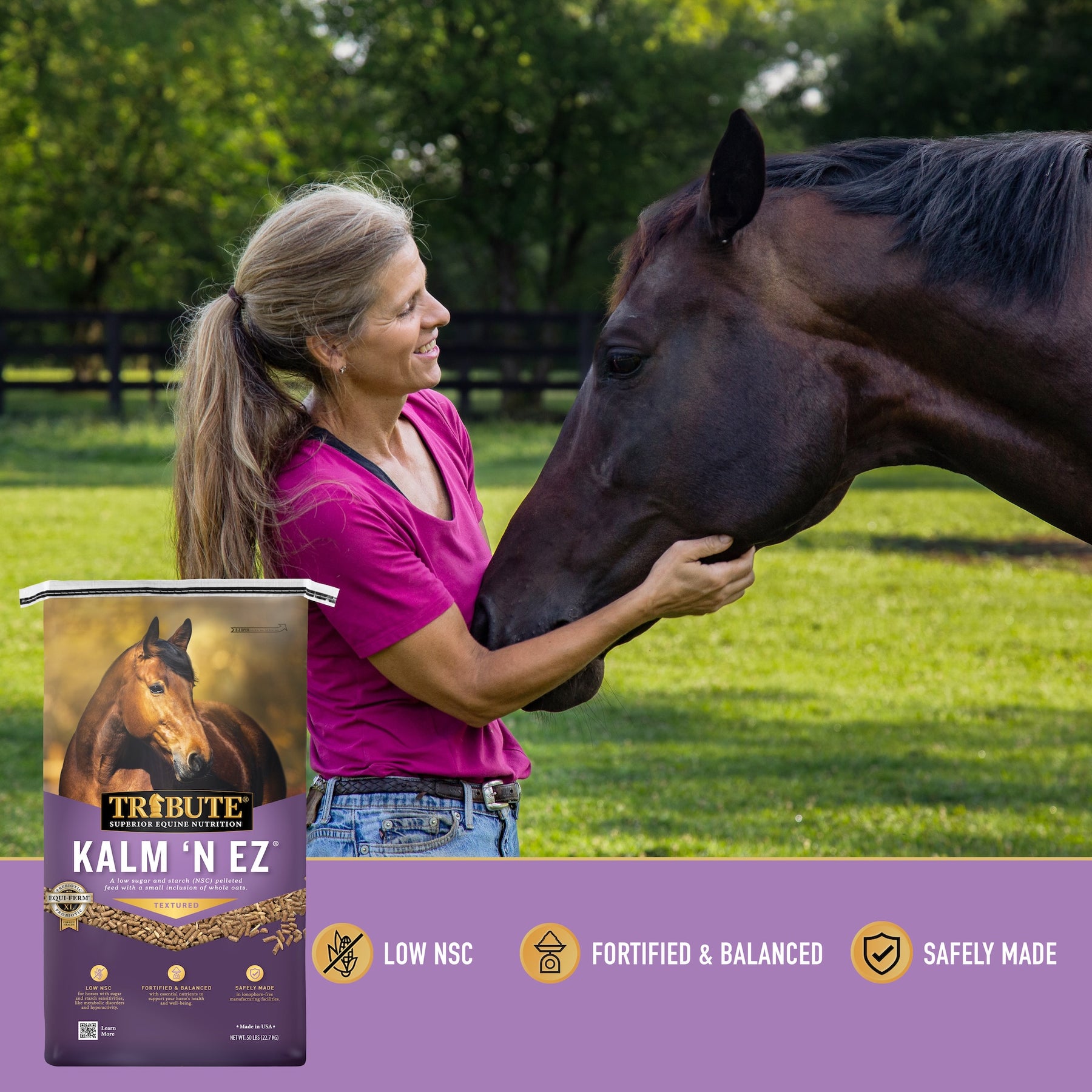 • Highly digestible fiber supports calmer performances without loss of energy or condition.