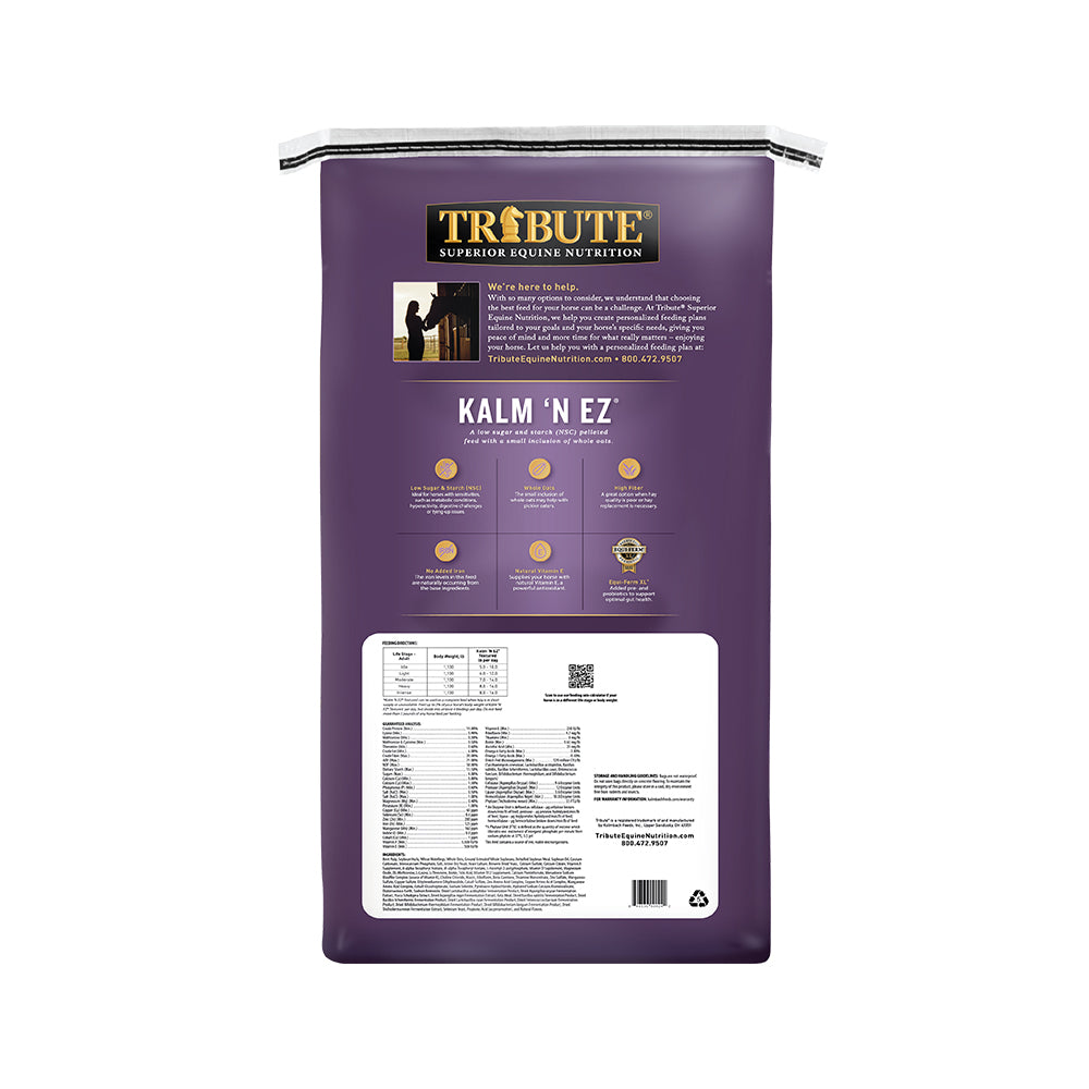 Kalm ‘N EZ® can be used as a complete feed when hay is in short supply or unavailable. May feed up to 20 lb per day of Kalm ‘N EZ®, but divide into at least 4 feedings per day.