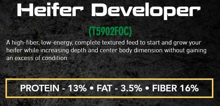 A high fiber ration to grow and develop your heifer with optimum rib shape and depth without excess condition. Also useful in holding steers.