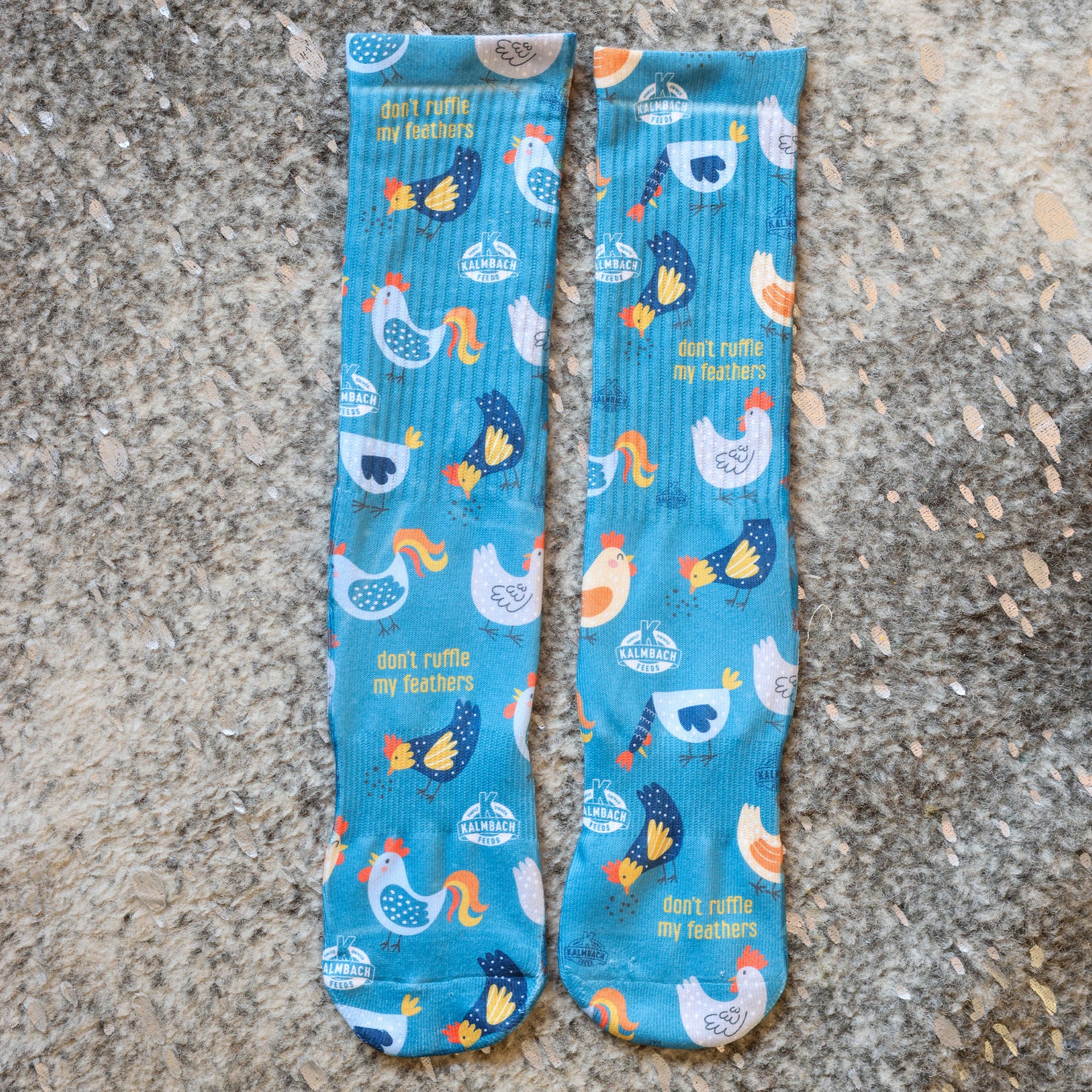 Add a little sass to your step! These comfy socks are for the chicken lovers who aren’t afraid to strut their stuff. Featuring bold, colorful hens, cheeky roosters, and the iconic phrase “Don’t Ruffle My Feathers."