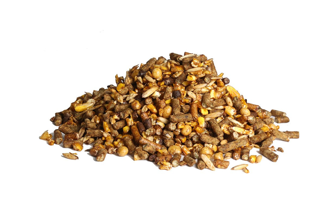 Cracked Corn, Steam-Rolled Barley, Crimped Oats, Roasted Soybeans, Dehulled Soybean Meal, Dehydrated Alfalfa Meal, Soybean Hulls, Extruded Soybean Meal, Linseed Meal, Wheat Middlings, Cane Molasses, Dried Whey, Corn Starch, Active Dry