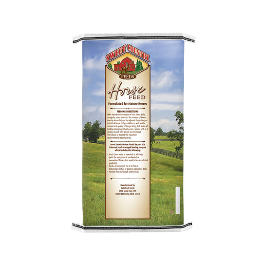 A textured sweet feed formulated to be fed to mature horses at maintenance or light training.